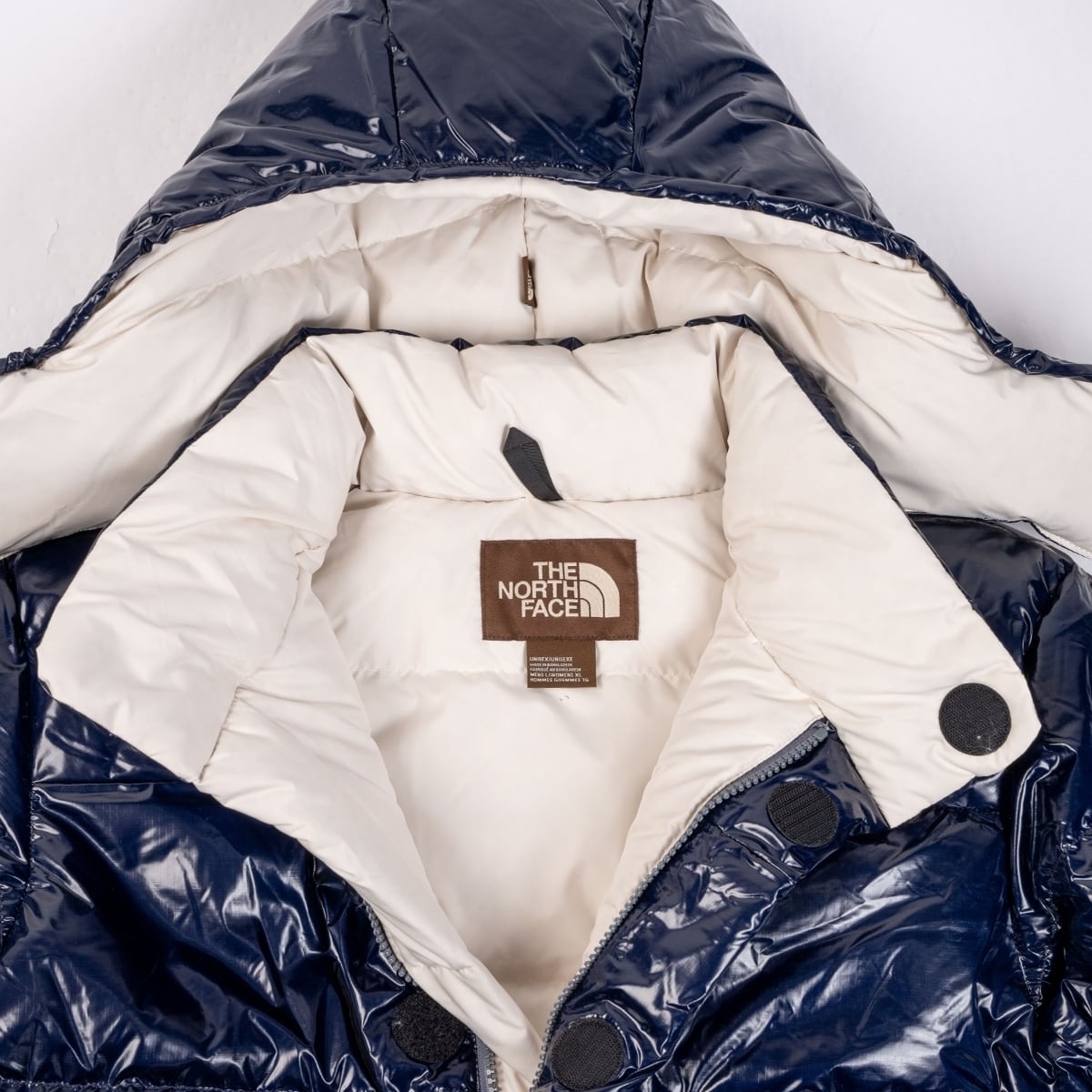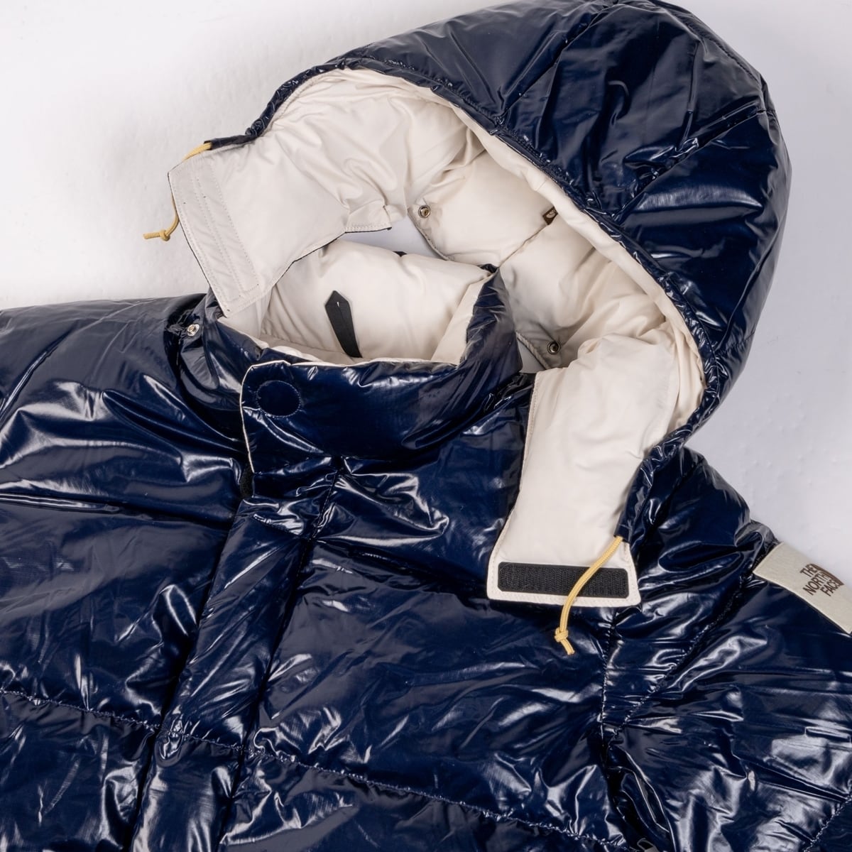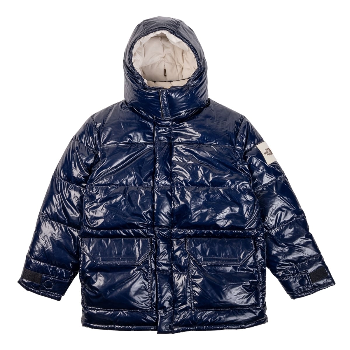1970~80年代をインスパイアして構成されたレトロなデザイン。表面は光沢のあるエナメル調ナイロン生地を使用。DWR加工により耐久性と撥水性を維持。フードは取り外し可能。フィルはリサイクルダウン75%で、ノースフェイスならではの抜群の保温性を誇ります。